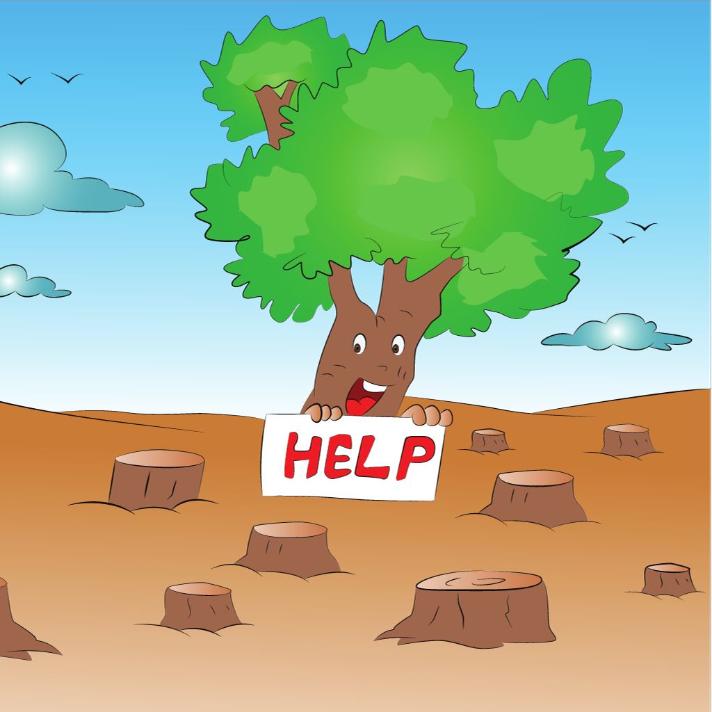 Deforestation is when too many trees get cut down, it’s like ripping holes in our playground. This happens for lots of reasons, like building houses, making furniture, and even growing some food.